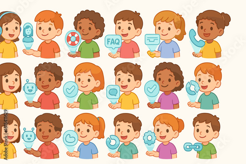 Communication flat icon set. chat, message, phone icons in flat style for apps