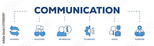 Communication icons process structure web banner illustration of exchange, discussion, information, technology, advice, and teamwork icon live stroke and easy to edit