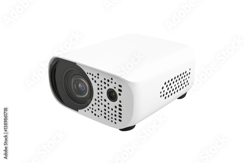 Compact Portable Projector Sleek White Design High Definition Lens Perfect for Home Cinema and