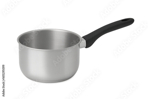 Compact stainless steel cooking pot featuring ergonomic black handle, ideal for individual meal preparation