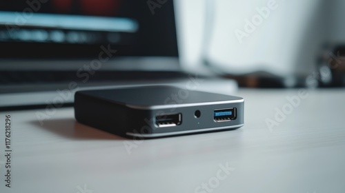 Compact USB Hub with Multiple Ports for Convenient Connections in Modern Workspace, Ideal for Home Office Setup, Technology Accessories, and Computer Peripherals