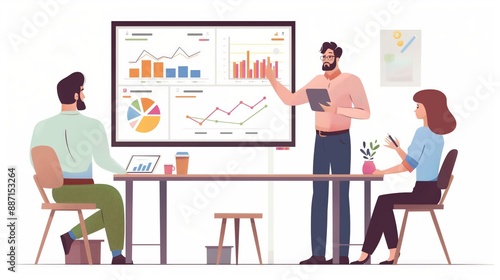 Company Creative Manager Holds Sales Meeting Presentation for Employees and Executives.
