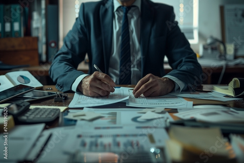 Company financial data, graphs, and records are analyzed by business investment advisors.