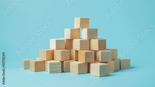 Company hierarchy organization chart of wooden cubes on blue background. human resource management