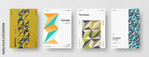 Company identity brochure template collection. Business presentation vector A4 vertical orientation front page mock up set. Corporate report cover abstract geometric illustration design layout bundle.