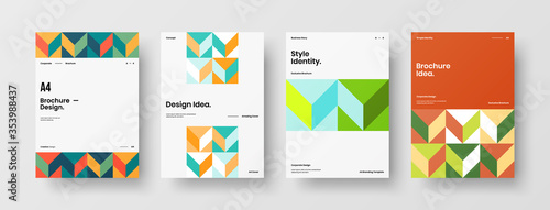 Company identity brochure template collection. Business presentation vector A4 vertical orientation front page mock up set. Corporate report cover abstract geometric illustration design layout bundle.