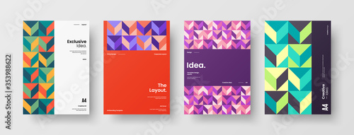 Company identity brochure template collection. Business presentation vector A4 vertical orientation front page mock up set. Corporate report cover abstract geometric illustration design layout bundle.
