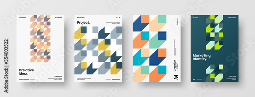 Company identity brochure template collection. Business presentation vector A4 vertical orientation front page mock up set. Corporate report cover abstract geometric illustration design layout bundle.