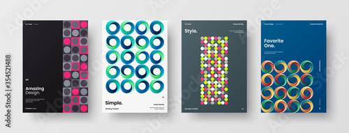 Company identity brochure template collection. Business presentation vector A4 vertical orientation front page mock up set. Corporate report cover abstract geometric illustration design layout bundle.