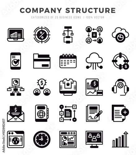 Company Structure icons set. Collection of simple Lineal Filled web icons.
