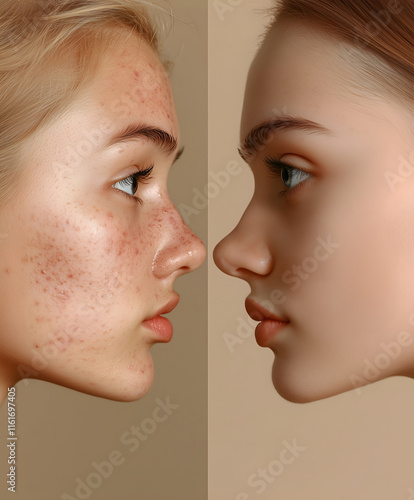 Comparison indicating the prominent reduction of acne vulgaris, freckles and moles