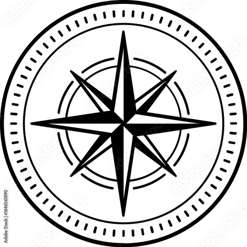 Compass Navigation Tool - Black and White Compass Rose Icon