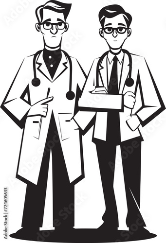 Compassionate Care Doctors Dedication Depicted in Black Color Vector Logo Unity in Wellness Doctors Supportive Relationship with Patients in Black Iconic Logo