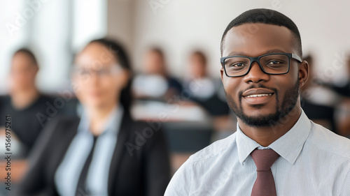 Compassionate cybersecurity trainer conducts session to educate professionals on protecting against intrusions in a bright corporate setting