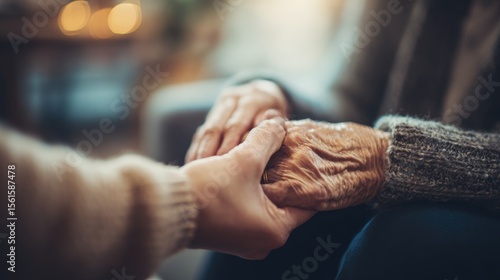 Compassionate Elderly Care Hand Holding Supportive Touch Warmth Friendship Bond.