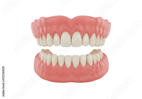 Complete set of dentures isolated on white, dental prosthesis for elderly people and tooth replacement solution