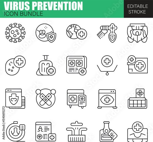 Complete Virus Prevention and Hygiene Icon Set – Flat Vector Collection for Medical Safety, Sanitation, and Public Health