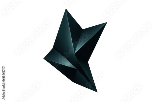 Complex dark metallic three-dimensional polygonal geometric shape rotating on transparent background, ideal for technology, futuristic or abstract designs