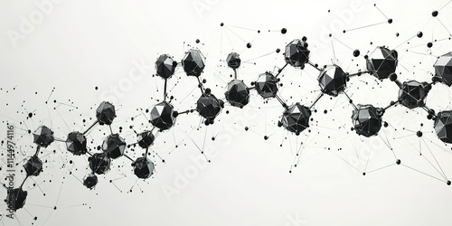Complex network of geometric shapes illustrating connections and interactions in digital art