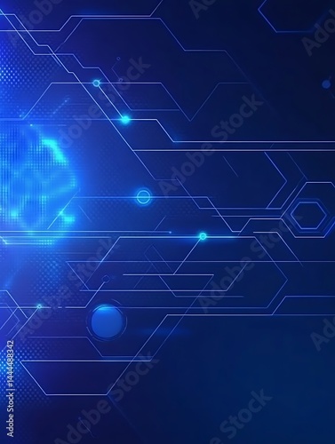 Complex network visualization with geometric shapes on blue backdrop