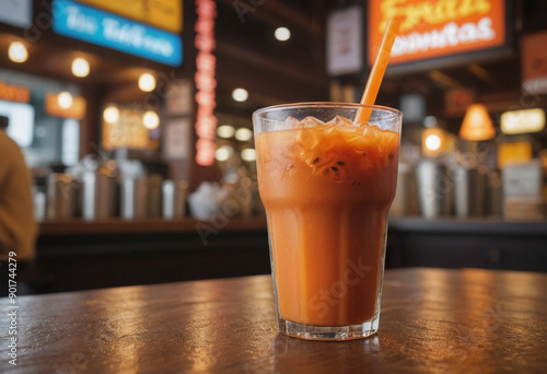 complex photorealistic of Thai Iced Tea , vivid colors, Enchanted Masterpiece
