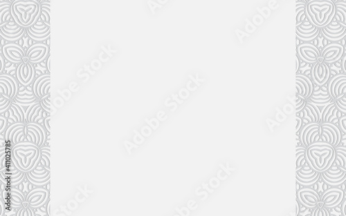 Complex volumetric convex pattern 3d Ethnic geometric white background in doodling style with vertical inserts for wallpaper, presentations.
