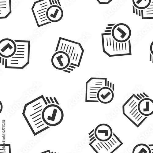 Compliance document icon seamless pattern background. Approved process vector illustration on white isolated background. Checkmark business concept.