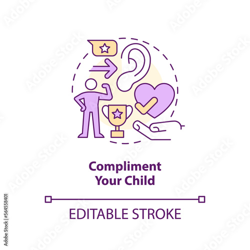 Compliment your child concept icon. Mark achievement. Promoting self esteem in teen abstract idea thin line illustration. Isolated outline drawing. Editable stroke. Arial, Myriad Pro-Bold fonts used