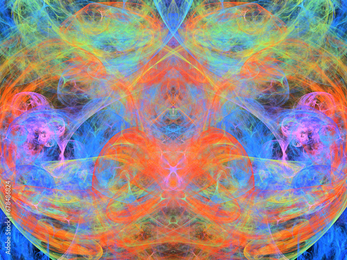 Composición de arte digital fractal consistente en trazos delicados con colores velados en un conjunto simétrico que parece mostrar vientos huracanados transportando partículas estelares.