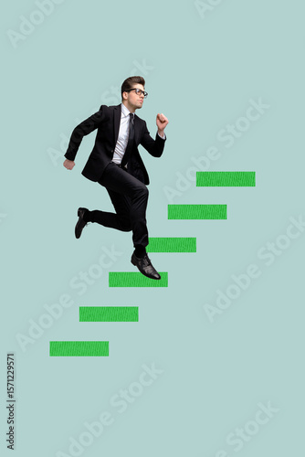 Composite 3d banner art pop image collage of happy businesswoman businessman stand chart statistics goal progress chance