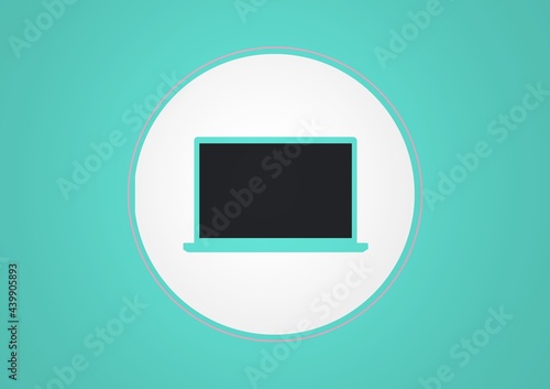 Composition of computer screen in white circle on blue background