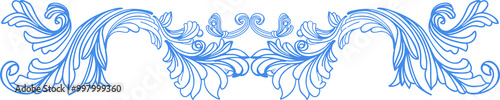 Composition of elegant botanical elements on a Victorian theme. Thin outline graphic elements in blue on white background. Digital illustration for covers, branding, wedding design.