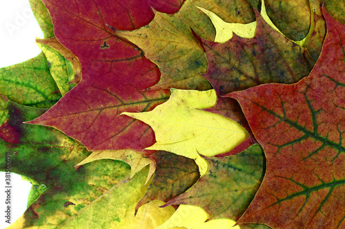 Composition of several maple leaves of different colors. Close-up. Natural color.