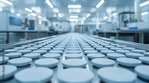 Compound Isolation Service Concept. Modern Pharmaceutical Manufacturing Facility with Tablet Production Line and Equipment