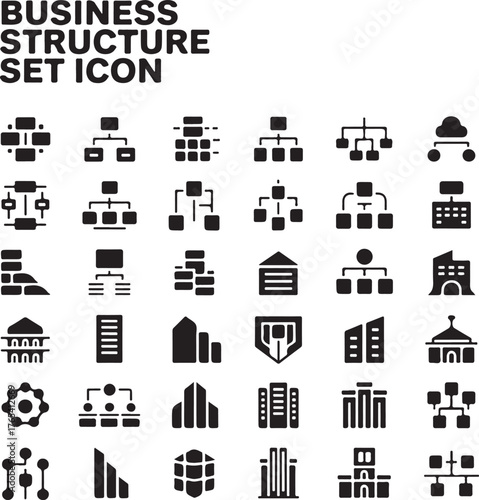 Comprehensive business structure icon set 30 clean silhouettes for organizational charts and hierarchy diagrams