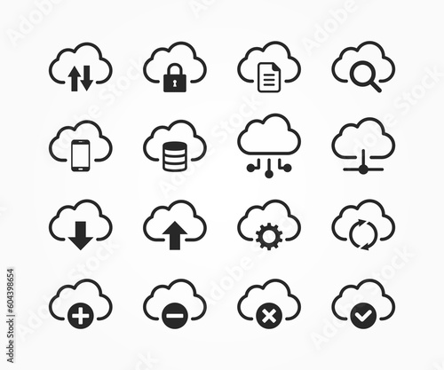 Computer cloud icon set. Cloud Hosting related line icons. Cloud storage and Network icon set.