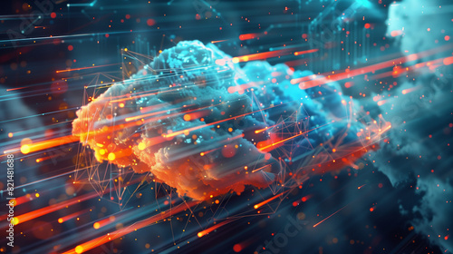 Computer Generated Brain Surrounded by Orange and Blue Lights