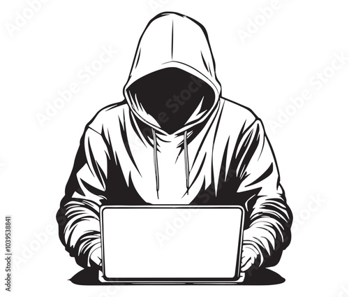 Computer hacker with laptop icon vector illustration silhouette. Hacker working on laptop. Hacker silhouette icon
