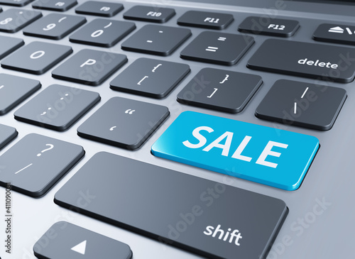 Computer notebook keyboard with Sale key - technology background.3d illustration