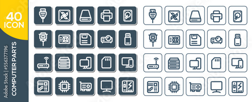 computer parts icon set design
