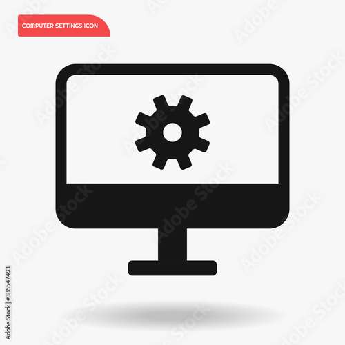 Computer setting icon vector template with black outline, UI icon for technology, fix and repair service, PC.