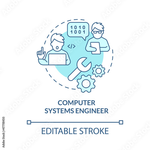 Computer systems engineer turquoise concept icon. Development position abstract idea thin line illustration. Isolated outline drawing. Editable stroke. Roboto-Medium, Myriad Pro-Bold fonts used