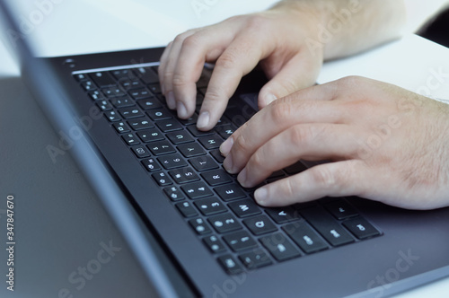computer work, keyboard and hands close-up