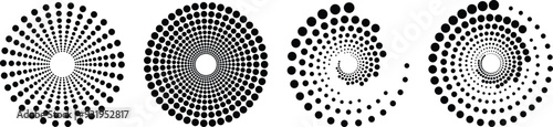 Concentric circle design elements. Abstract Geometric circular shapes background. Spiral Vector Illustration. Rotating radial and dotted lines collection. Design geometric.