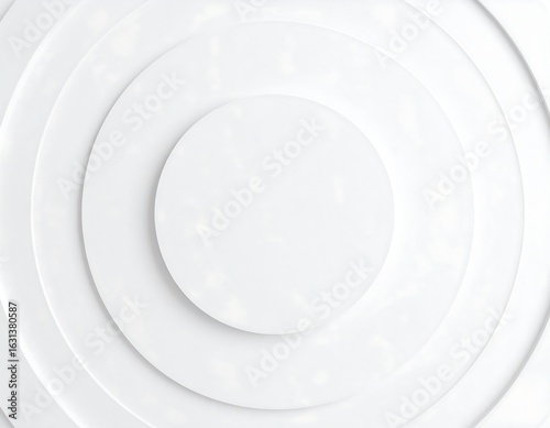 Concentric circles of varying sizes create a minimalist, depth-inducing white backdrop