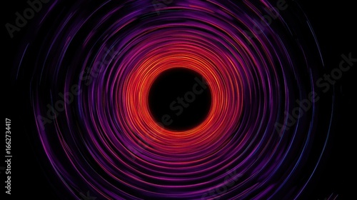 Concentric circular patterns with vibrant glowing red and purple rings swirling around a central black void, evoking a sense of depth and energy