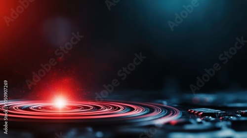 Concentric red light rings create a hypnotic effect on a dark surface, emphasizing the concepts of focus, energy, and modern digital technology visualization.
