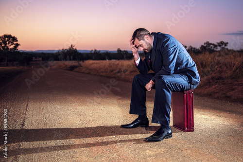 Concept: A frustrated business man is leaving the corporate lifestyle and chasing freedom in the outback of Queensland, Australia. Cinematic Portrait Style.