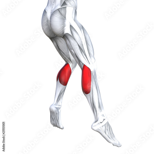 Concept conceptual 3D illustration fit strong back lower leg human anatomy, anatomical muscle isolated white background for body medical health tendon foot and biological gym fitness muscular system