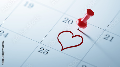 Concept image of a Calendar with a red push pin. Closeup shot of